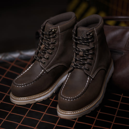 SL-Saint Men’s Work Boots Soft Moc Toe Classic Ankle Fashion Casual 6 Inch Wedge Sole Industrial Construction Shoes Brown