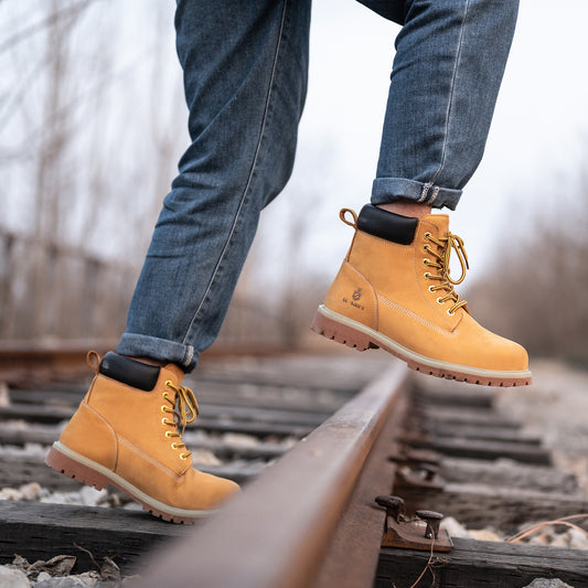 SL-Saint Waterproof Steel Toe Classic UPGRADED Work Boots For Men Industrial&Construction Insulated Safety Shoes Breathable Performance Fashion Hiking Footwear EH Tan 6 Inch