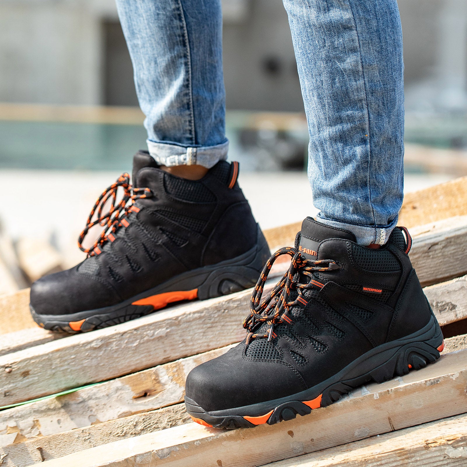 - 💯【WATERPROOF&COMFORTABLE】:SL-Saint work boots use new waterproof technology of HydroGuard Waterproof System to achieve static water resistance for 4 hours,let vapor out without letting water in,that allows you to keep your feet dry even if you walk in standing water,it is a well-crafted boot with quality materials.It also provides a super comfortable and breathable dressing experience,you can wear the boots all day at work or usual,you will feel that the boots were design and made just for you.